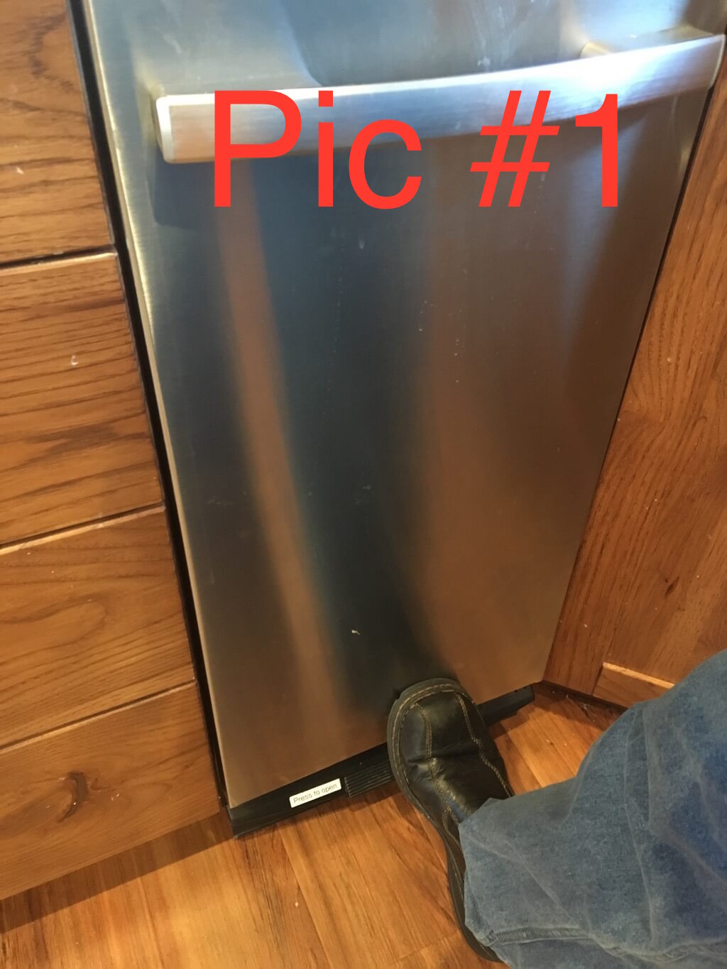 To Close - Use your foot to push the bin at the bottom (Pic #1)